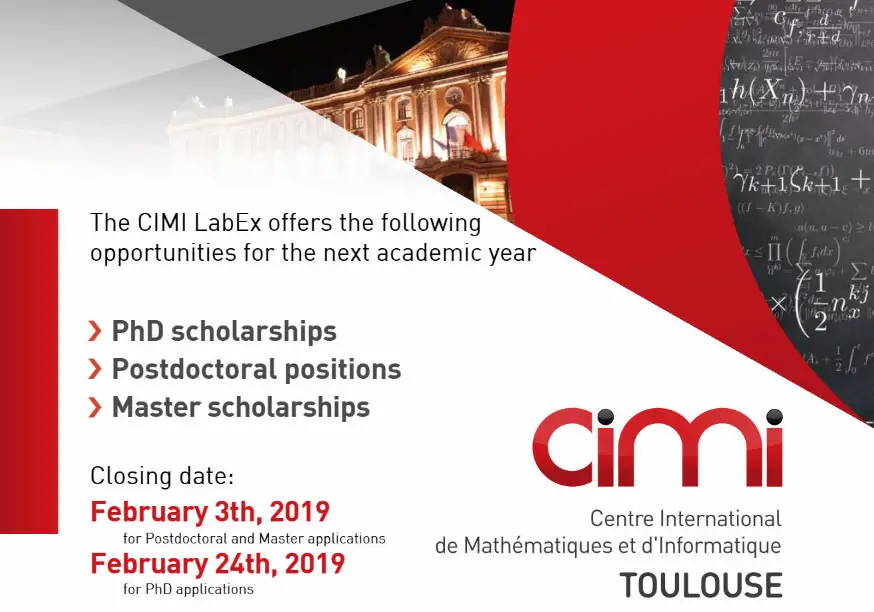Applications are open for the Post-doctoral Fellowships for International Students funded by the CIMI Toulouse – University of Toulouse. These fellowships are available to holders of doctoral degrees in mathematics or computer science in France or any foreign country till September 30, 2019.