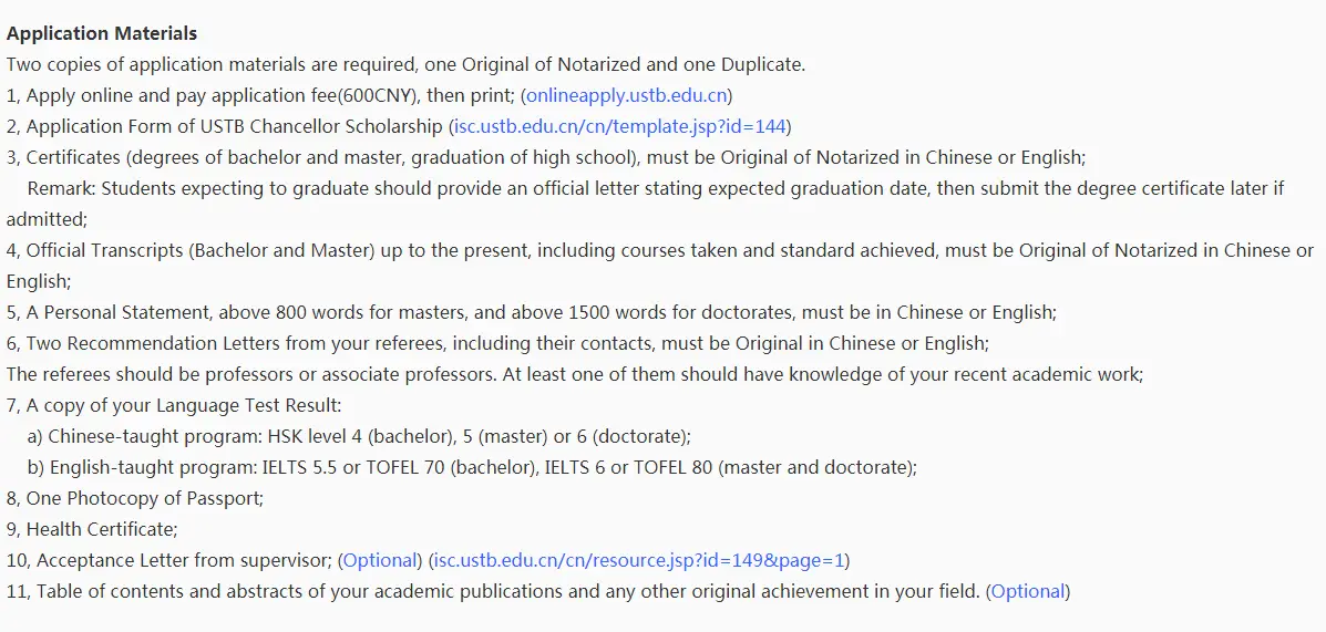 - How to Apply: To apply, the applicants must apply online pay the application fee. (onlineapply.ustb.edu.cn) and submit all documents to the International Student Center, USTB.